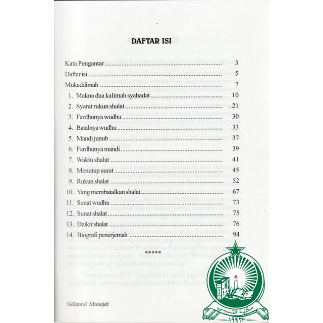 Ini adalah buku terjemahan dari kitab Sulam al-Munajat, yaitu sebuah kitab klasik karya Syeh Nawawi al-Banteni, yang menjelaskan kitab Safinah as-Sholah karya Syeh Sayyid Abdullah bin Umar bin Yahya al-Khadromi. Sebagian besar dari para santri Ittihadul Asna adalah para santri yang belajar ilmu agama sekaligus belajar ilmu umum di sekolah formal.