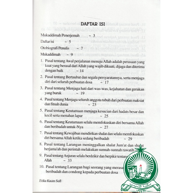 Etika Kaum Sufi (Adabul Sulukil Murid) HVS ; SC ; Standar