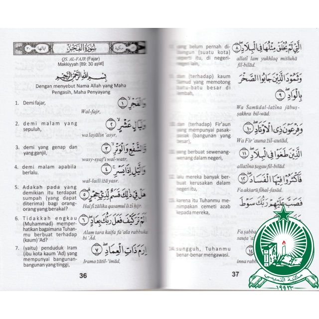 Buku Juz ‘Amma dan Terjemahnya dilengkapi Transliterasi Arab-Indonesia, Doa Khotmil Qur’an, Doa-doa Harian, Kaidah Tajwid dan Nadzam Asmaul Husna